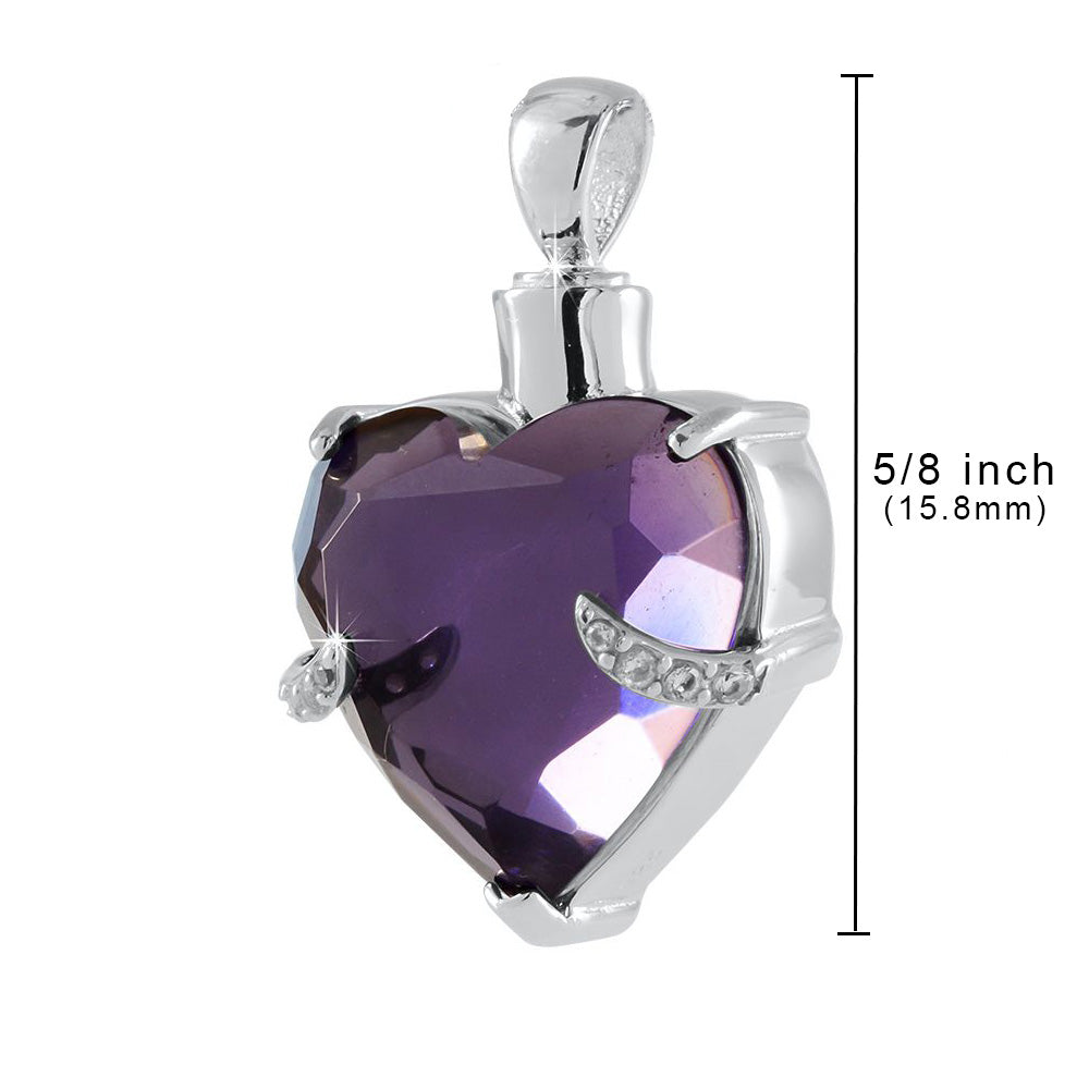 Silver .925 Cremation Royal Purple Heart Pendant with Necklace