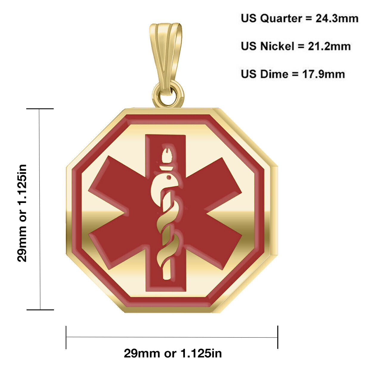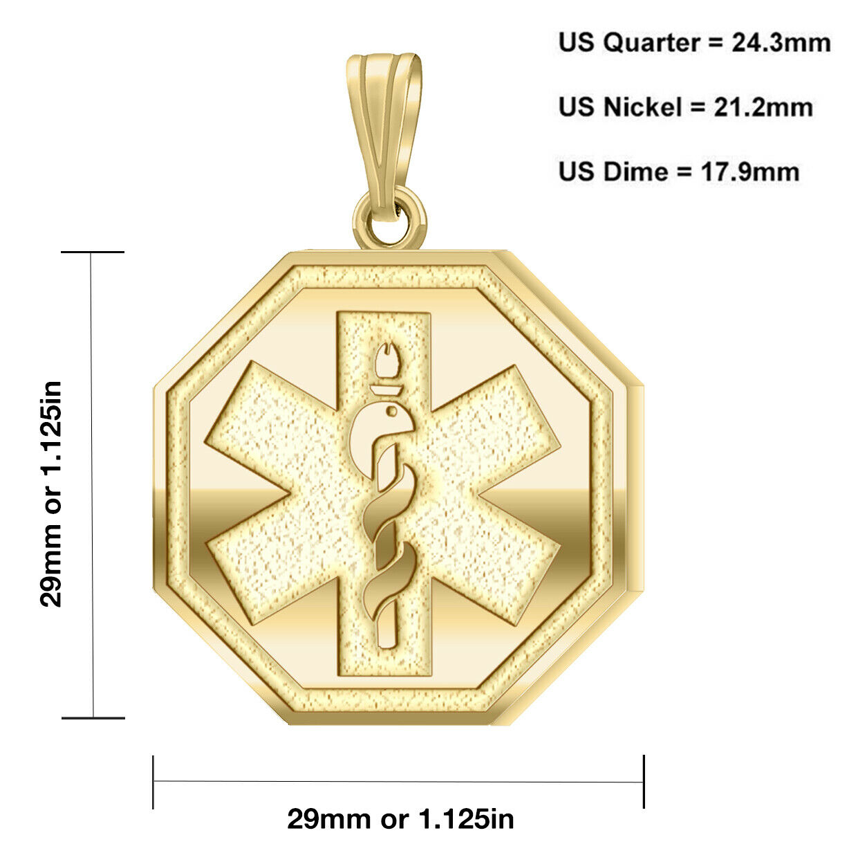 14k Yellow Gold Octagon Medical Pendant, 29mm
