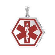 925 Sterling Silver Hexagon Red Medical Pendant, 1.25 inch