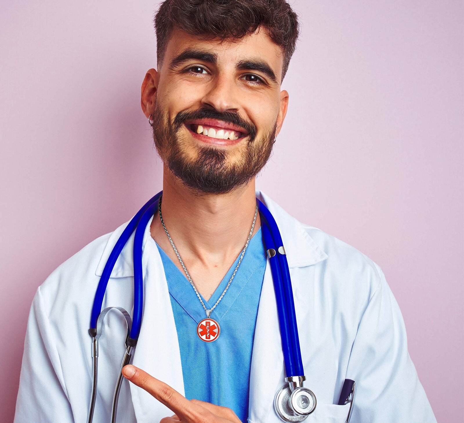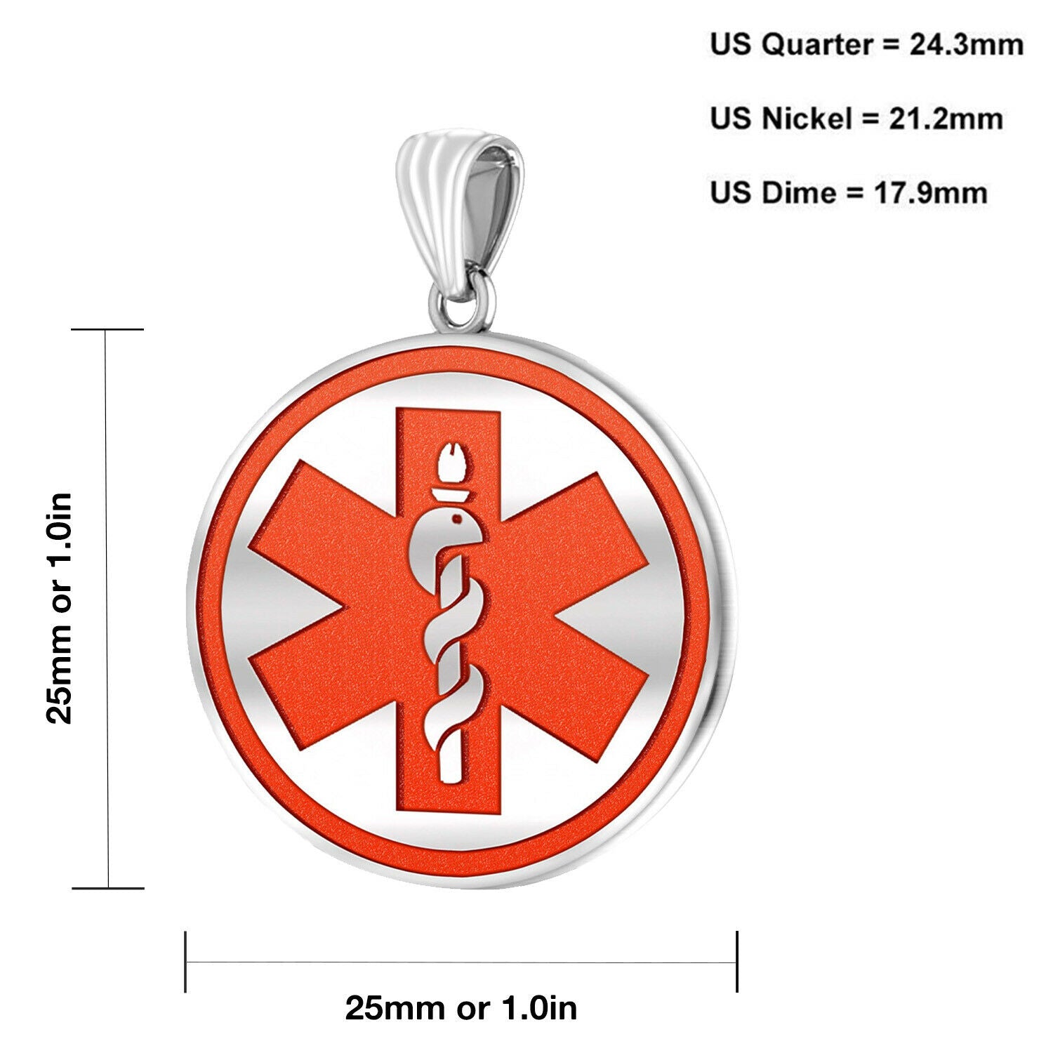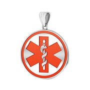 925 Sterling Silver Round Red Medical Pendant, 1 1/8 inch