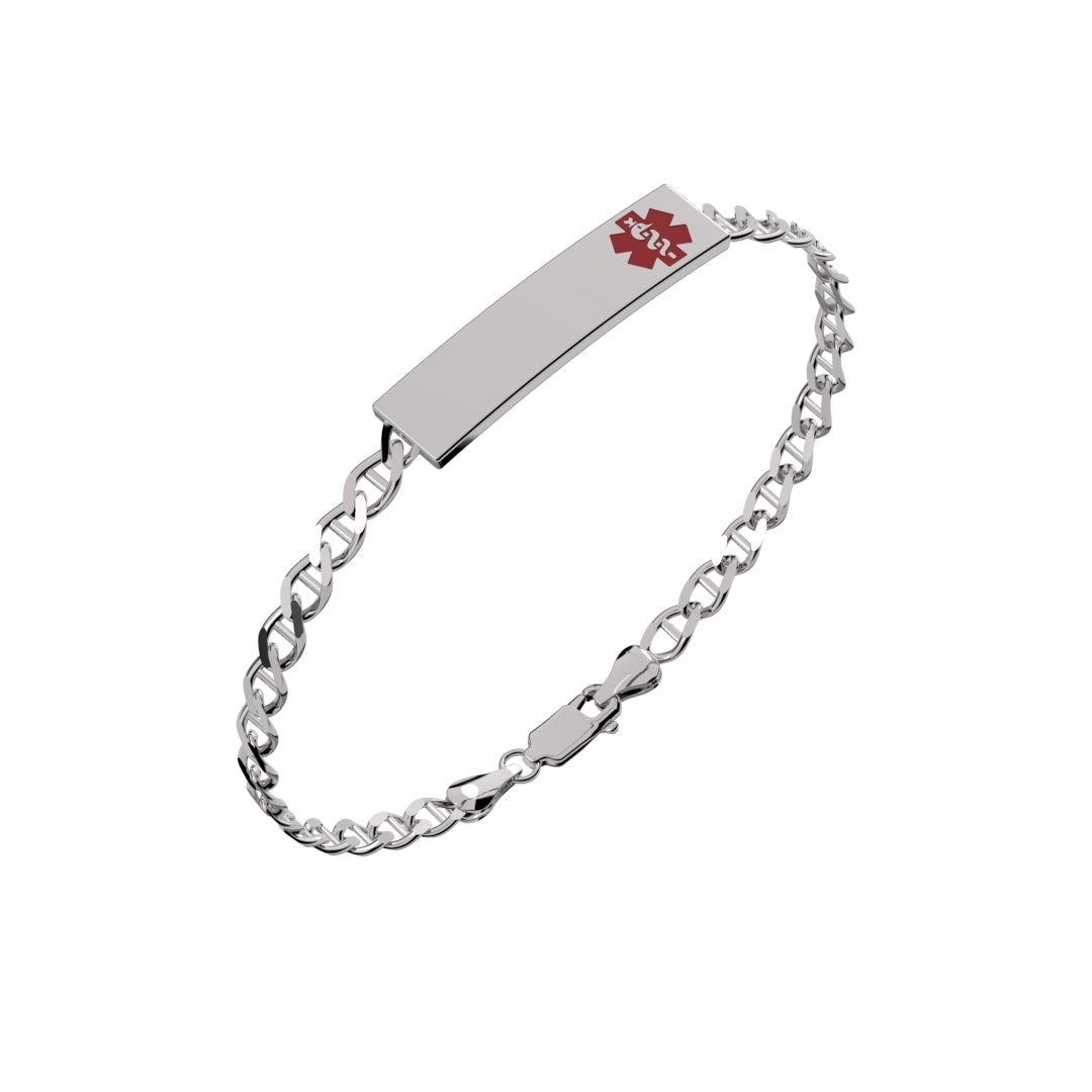 New sterling silver 925 medical bracelet can be engraved with your medical condition. No refunds or returns on items that have been engraved.