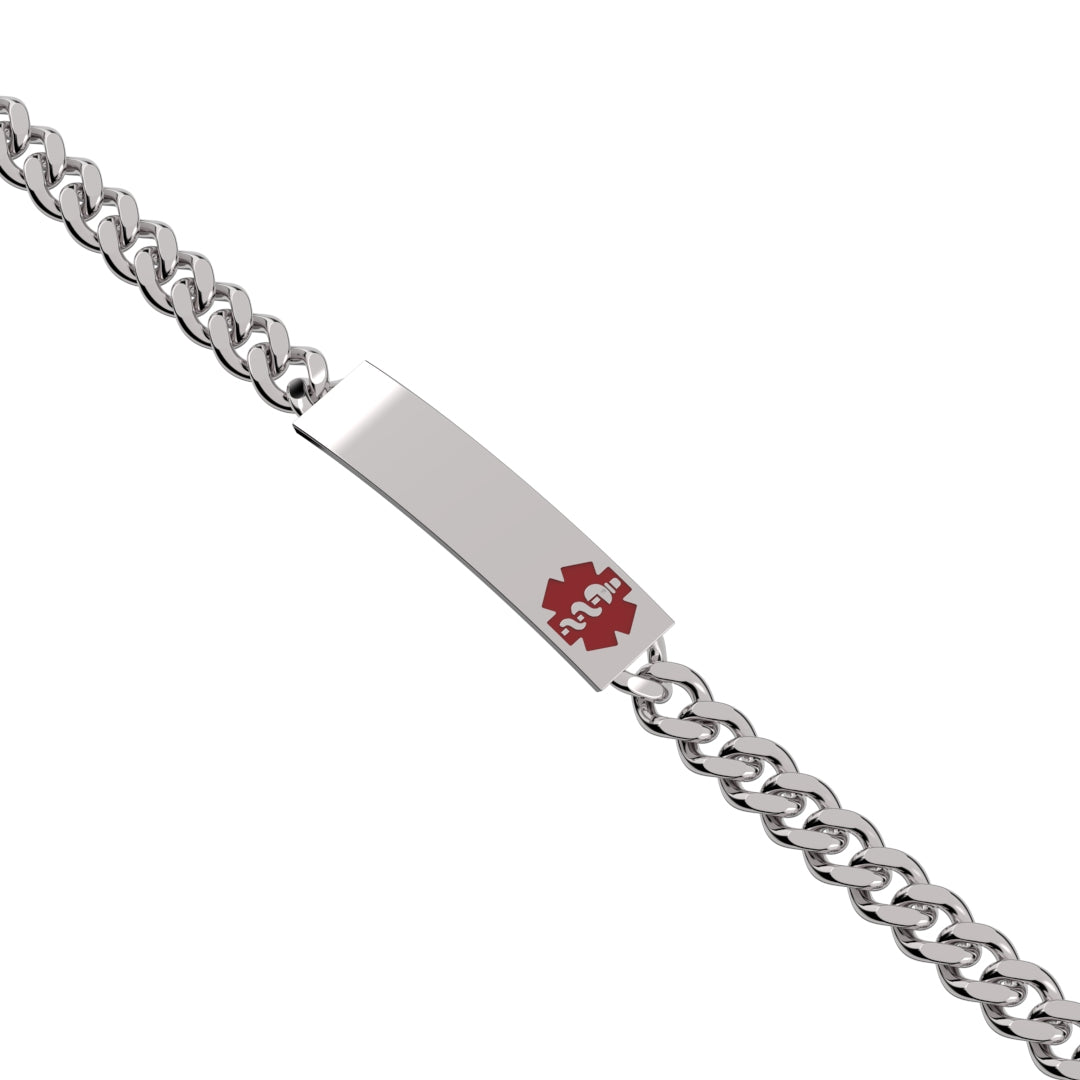 Curb 925 Sterling Silver Medical Rectangle ID Engravable Bracelet with Enamel