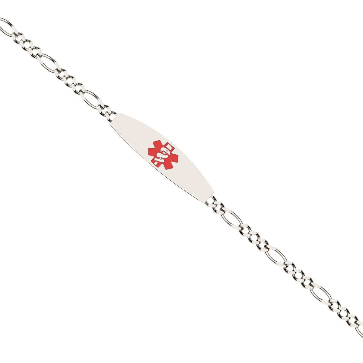 Figaro 925 Sterling Silver Medical ID Engravable Bracelet