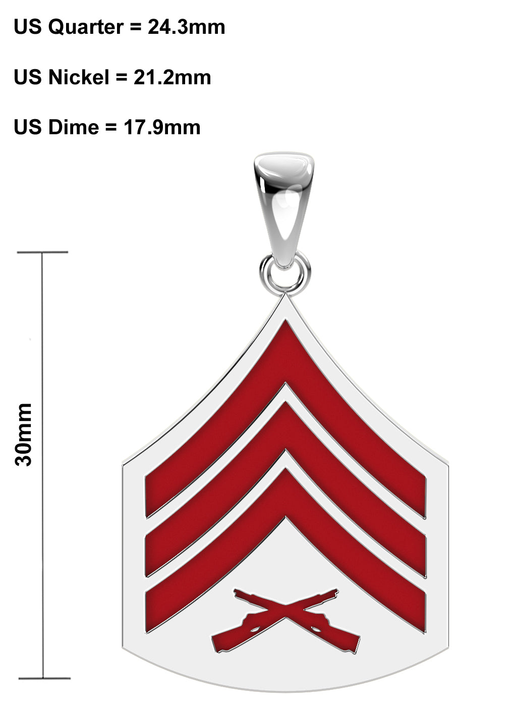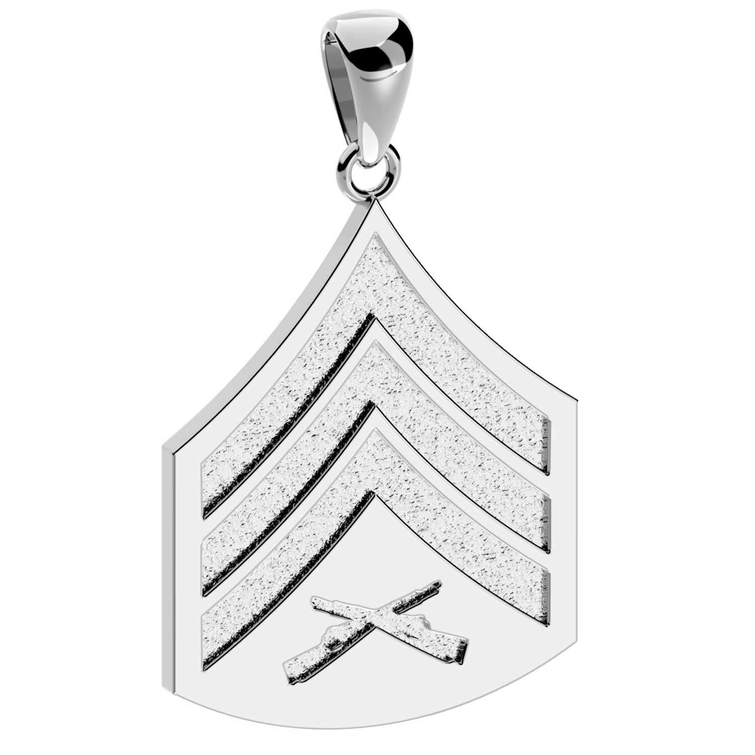 Sterling Silver Sergeant rank pendant is available for immediate delivery. Proudly made in the USA.