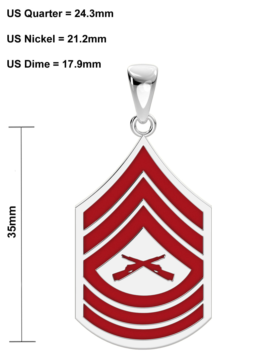 A brand new 0.925 sterling silver the United States Marine Corps master sergeant rank pendant.