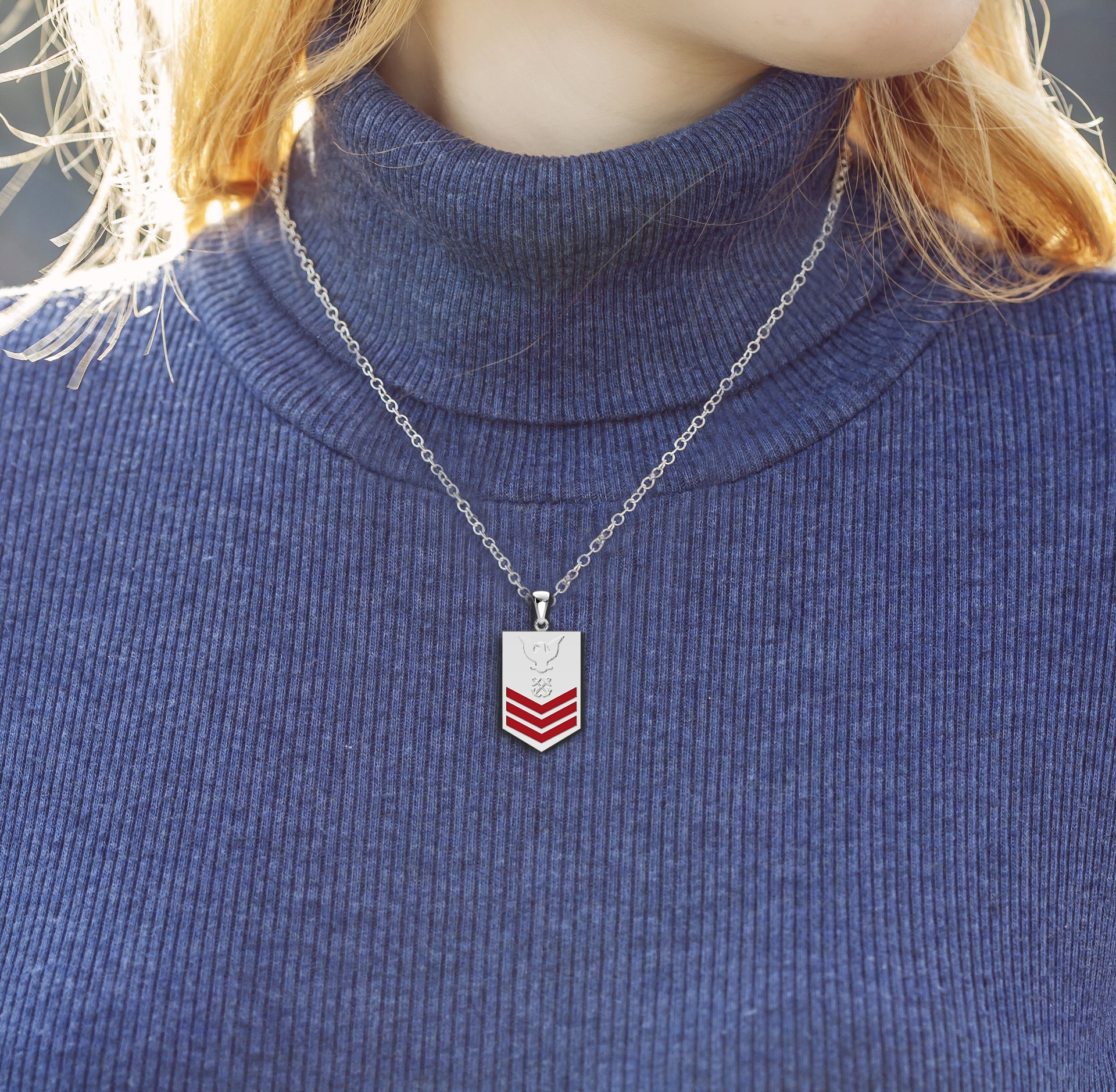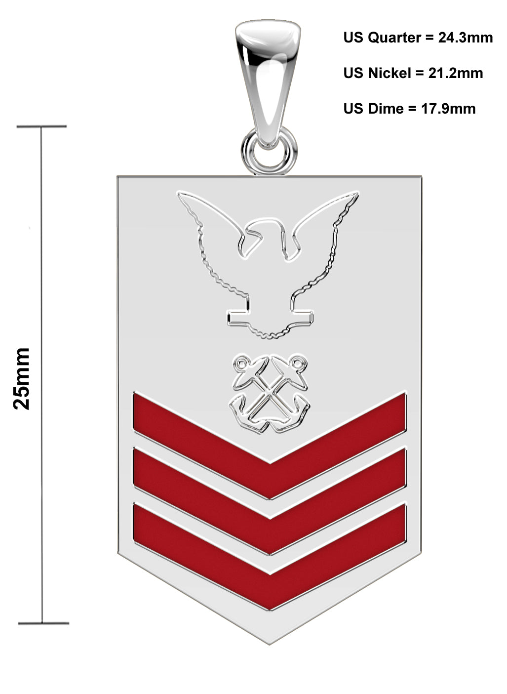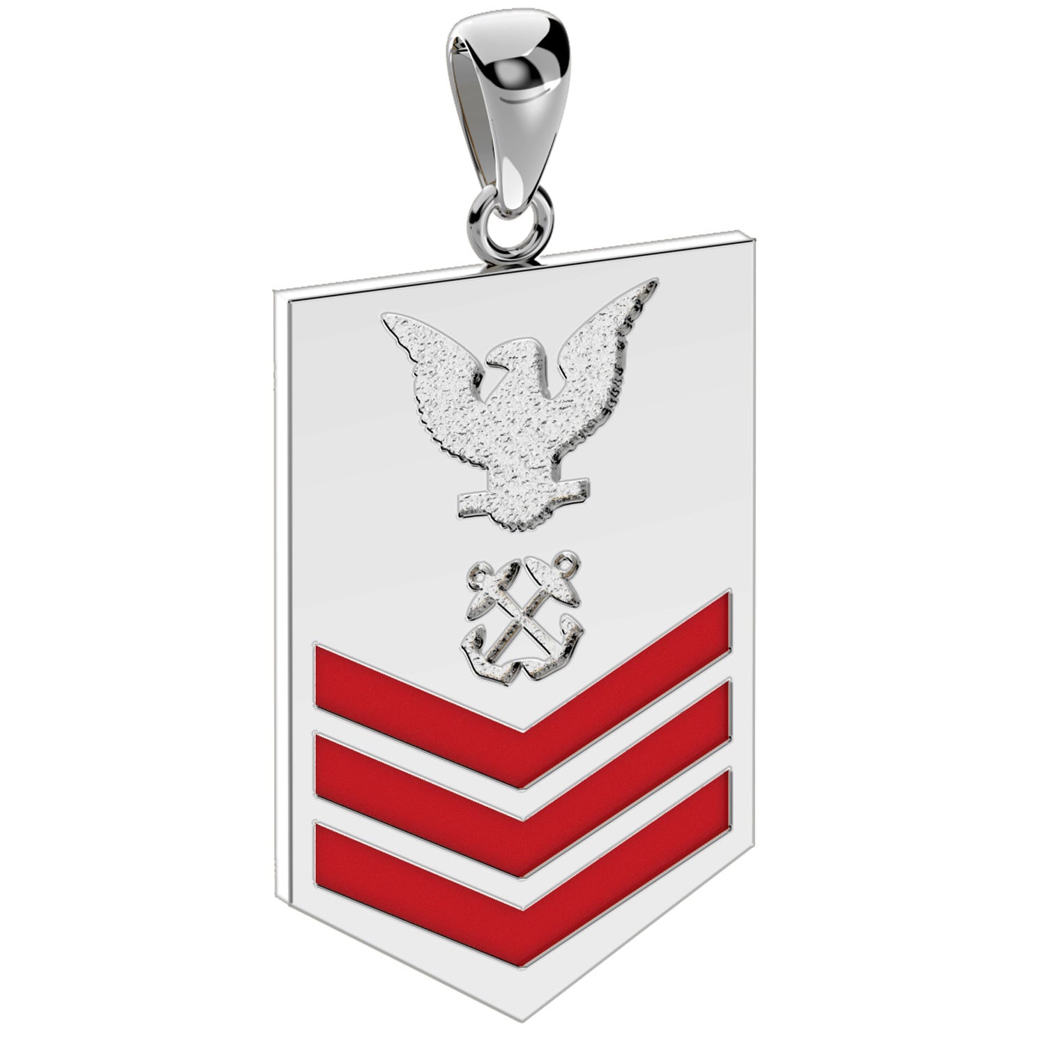 A brand new 0.925 sterling silver United States Navy petty officer first-class rank pendant.