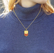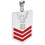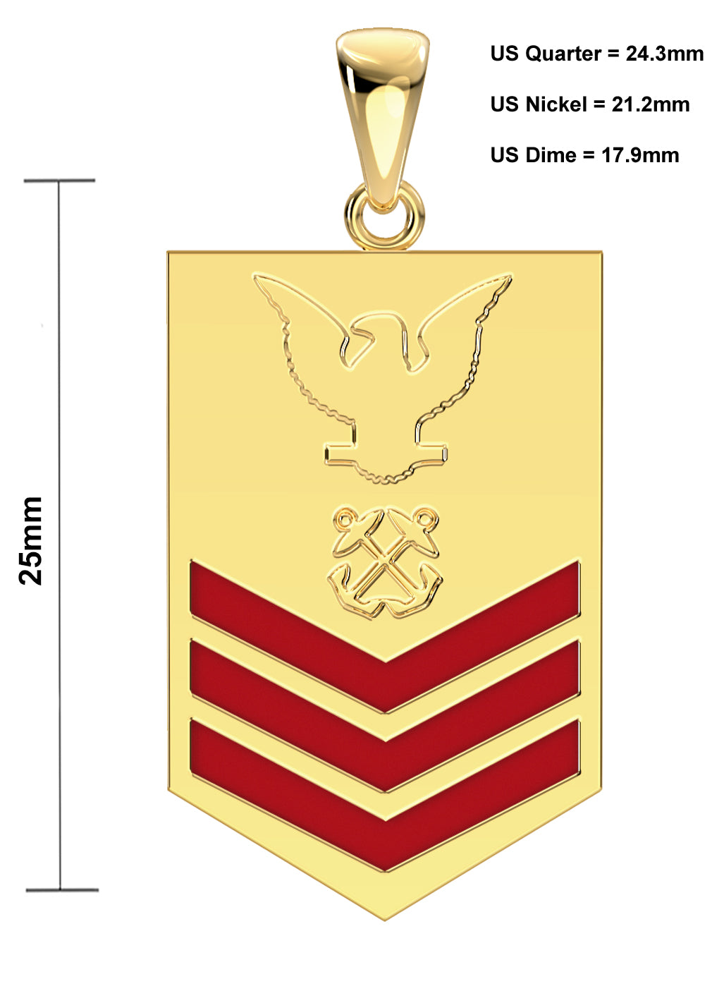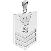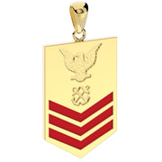 A brand new 14k or 10k yellow or white gold United States Navy petty officer first-class rank pendant.