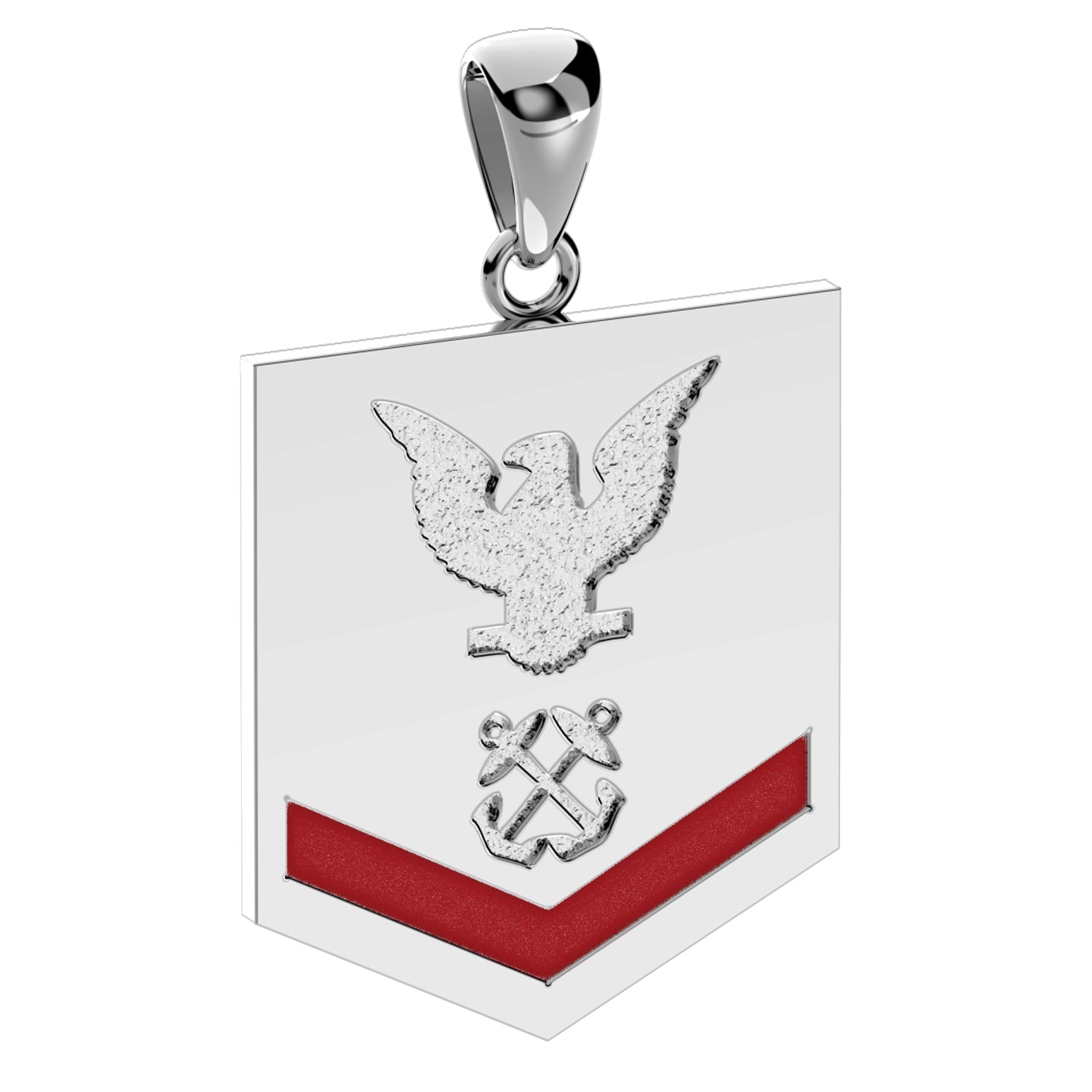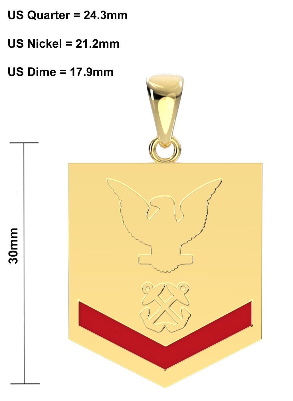 A brand new 14k or 10k yellow or white gold United States Navy petty officer third class rank pendant.
