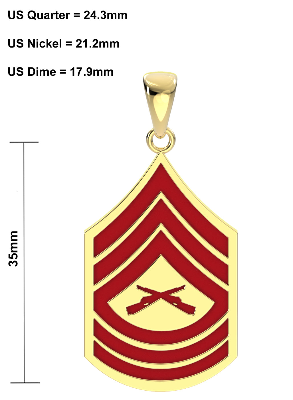 A brand new 14k or 10k yellow or white gold the United States Marine Corps master sergeant rank pendant.
